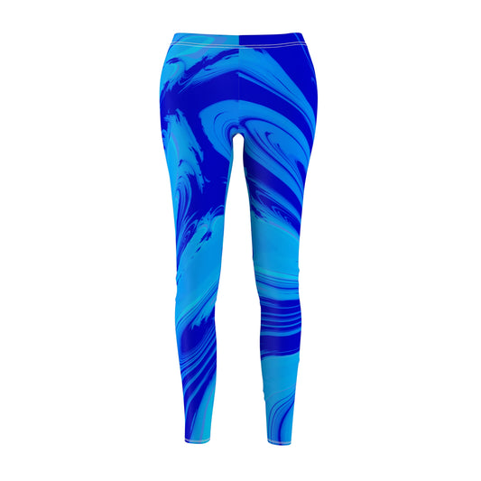 Women's Cut & Sew Casual Leggings - Blue Cream